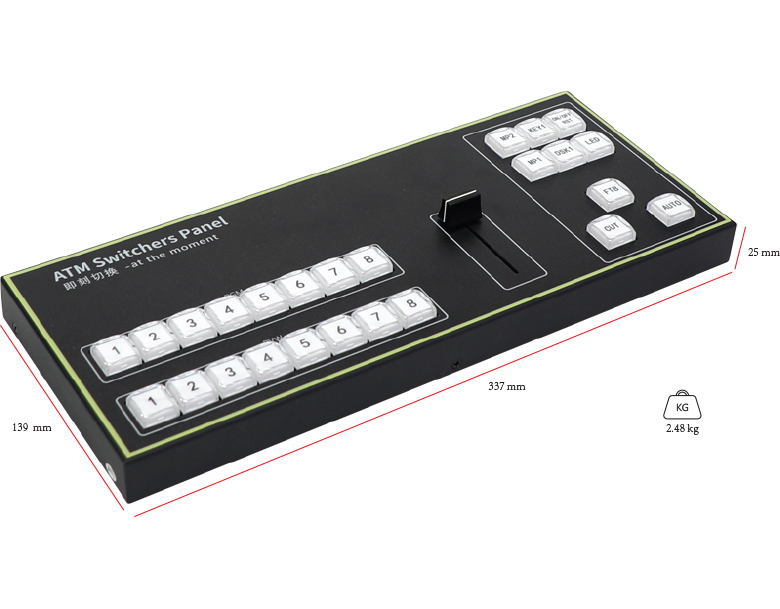 天影视通ATM Switchers Panel切换台面板,采用DC12V只留供电、热插拔和tally输出设计,支持blackmagicdesign全系列切换导播控制,切换台面板提供25路导播按键和1个导播推子,可实现8路导播切换,素材叠加、大屏输出等操作,同时切换台面板内置12路Tally接口,可与通话系统连接实现tally提示功能。